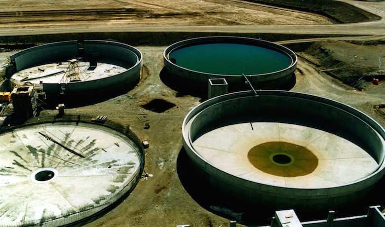 Four layers, with a diameter of 18 metres, receive muddy water, treat it, and return it to the pumping station; the water at the bottom is suctioned by 5 sludge pumps and discharged onto 20 drying beds. These drying beds (basins measuring 27 by 555 m) collect water from the sludge-percolation process. After drying in the sun, the sludge above the draining layers are recovered and stored.